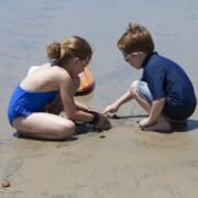 No.1被贝壳划伤宝宝和几个小朋友正在沙滩上你追我赶捡贝壳玩...