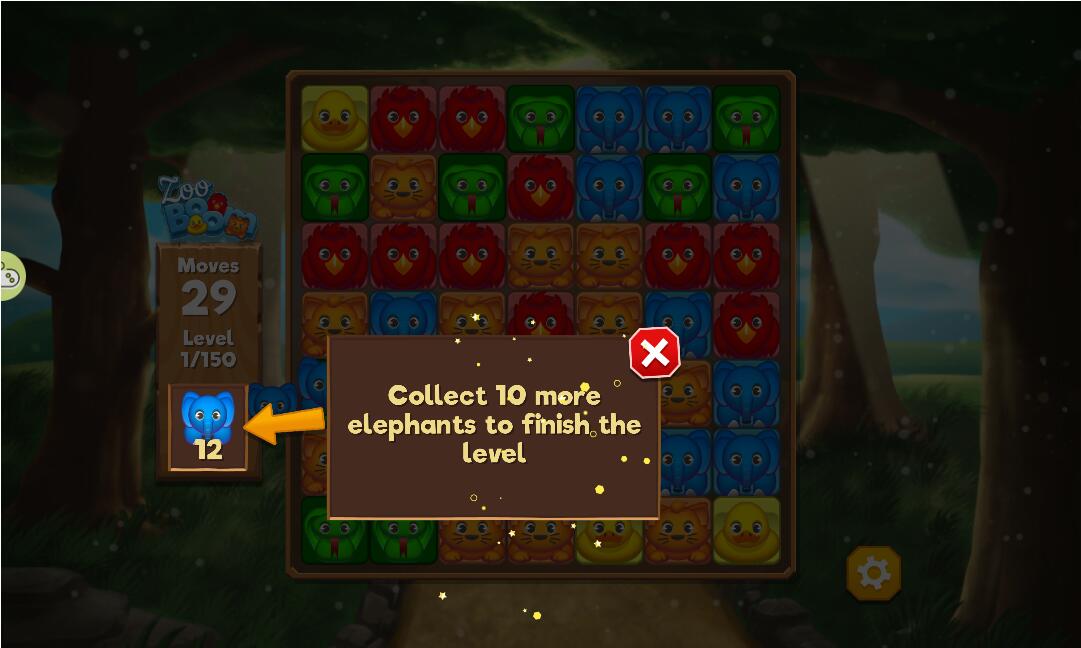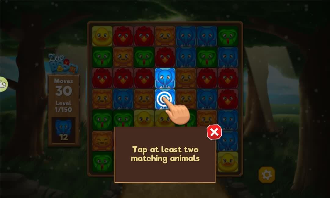 1. 交换两个动物方块,以创造一个垂直或水平线,3个或更多相同的动物方块。