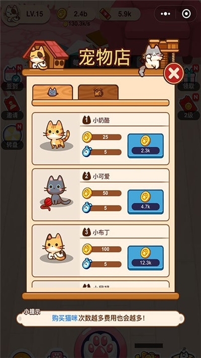 2. 萌猫养成系统:游戏中有着丰富的的人物角色和萌猫宠物,玩家可以通过养成系统来提升它们的属性。