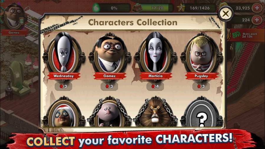 1. 游戏设定在亚当斯一家的神秘宅邸中,玩家需要收集角色、装饰宅邸,并解锁新的故事章节。