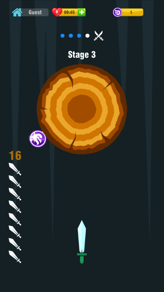 玩家需要使用飞刀投掷命中目标,每个关卡的目标不同,可能是木桩、圆盘等。