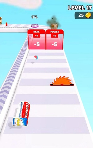 重力感应控制:玩家可以通过倾斜手机来控制牙膏角色的移动方向和速度。