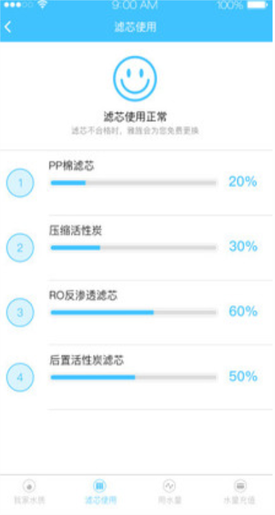 滤芯管理:提醒用户更换滤芯,记录滤芯使用情况,优化维护计划。