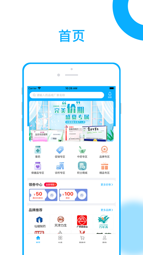 用户注册登录后,首页展示各类药品分类,清晰明了,便于快速查找所需药品。
