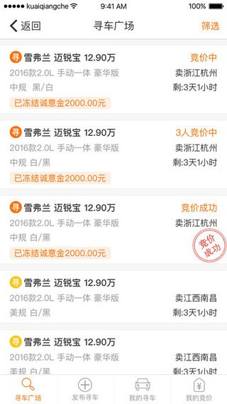 车源宝app是杭州快抢车网络有限公司推出的一款专门针对全国汽车经销商的在线交易平台。车源宝app致力于整合全国车商的优质车源,提供便捷易操作的交易方式,让买卖变得更轻松高效。车源宝专注车商汽车销售,人性化的竞价寻车,遍布全国的物流网络,可靠安全的担保机制,守护交易每一步。
