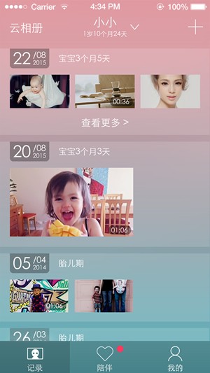 1、记录:宝宝成长时光轴,可以通过硬件设备拍摄、手机本地导入照片或者视频,完整地记录宝宝的成长过程,还可以对宝宝视频进行乐趣编辑;