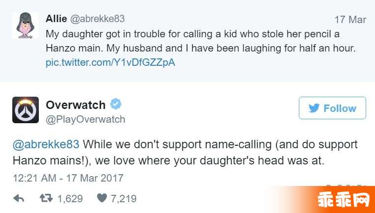 Allie在把这个消息发到Twitter上之后,引来了《守望先锋》官推的回复,他们表示虽然不支持这么叫,但很喜欢她的女儿这么做:小妹妹很有想法嘛,哈哈。