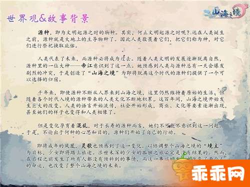 《山海之境》是一款将中国传说为基底的二次元风格的RPG。游戏以剧情为核心,融合了口袋妖怪的抓捕培养要素和轨迹系列和风色幻想相结合的SRPG战斗模式,以角色和设定创造一个独特的世界带给玩家。玩家跟随着主人公——一个进入异世界的人类,去了解这个世界,遇到形形色色的角色和丰富多彩故事。而在旅途中收集各种各样的同伴,借助同伴的力量渡过一个个难关。
