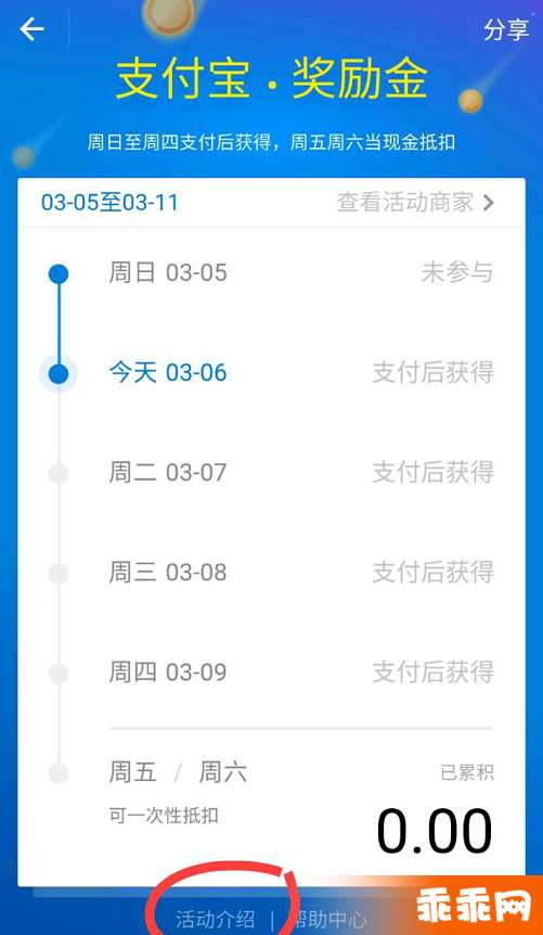 周日到周四,消费者使用支付宝在支持奖励金发放的商户消费在2元以上后,使用支付宝付款,可随机获得奖励金,最高999元,每天只能获得一次的奖励金。