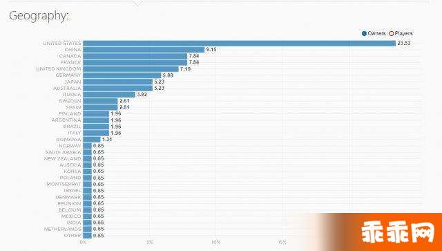 在SteamSpy上查询,我们可知在发售后的三天时间里,《尼尔:机械纪元》销量在10万份左右(具体数字为96928±8835)。从地区上来看,尚没有解锁的国内销量占比9.15%,名列第二,仅次于美国。