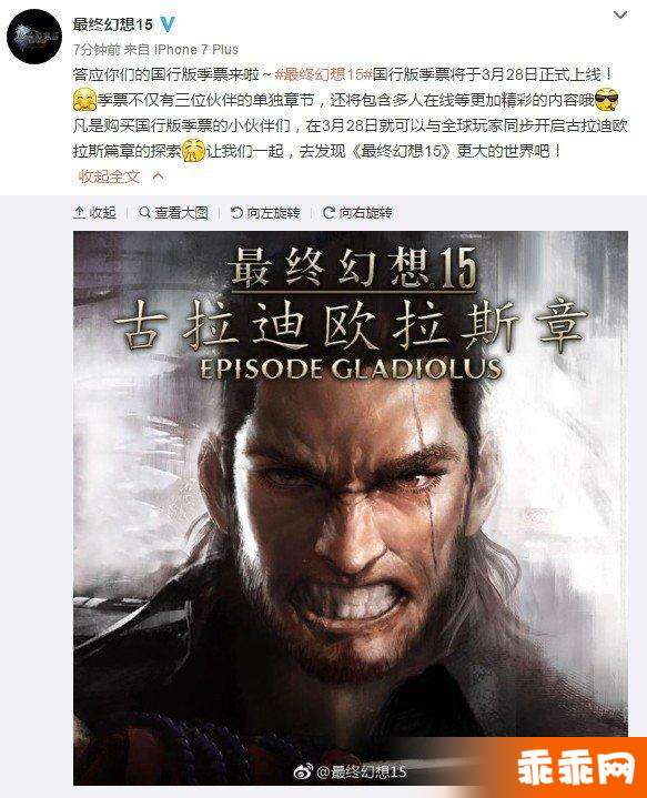 今日《最终幻想15》官方微博宣布,游戏的国行版季票将在今年3月28日正式推出。而在当天玩家就能体验到“古拉迪欧拉斯篇章”这一DLC的内容。