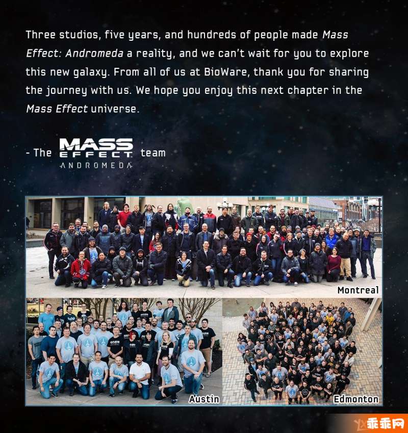 附MEA庆功照,该项目由BioWare旗下三个工作室用五年的时间合力完成: