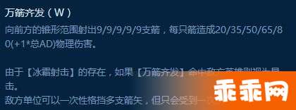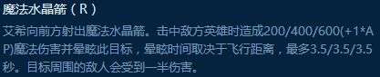 艾希的AOE风筝技能,满级短Cd可以很好搭配普攻输出,在前期W的暴击伤害也很不错。