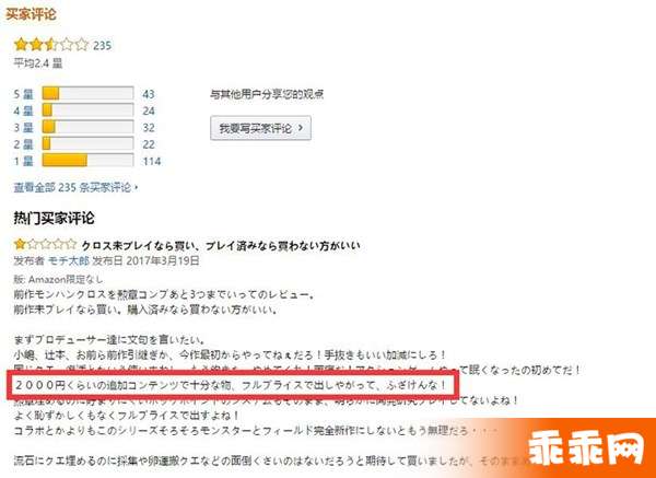 记录显示,《怪物猎人XX》在同类产品中位于销量榜首位,但买家平均评分仅有2.4星,其中更是有114名玩家打出了1星的评分。