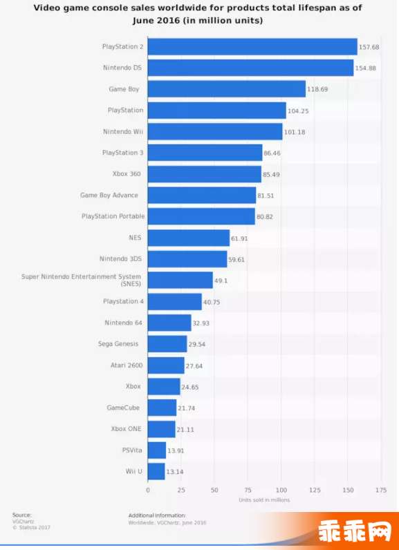 1994 年索尼发行的初代主机 PS 卖出了 1.04 亿台,而 2000 年的 PS2 则以超过 1.57 亿的销量名列