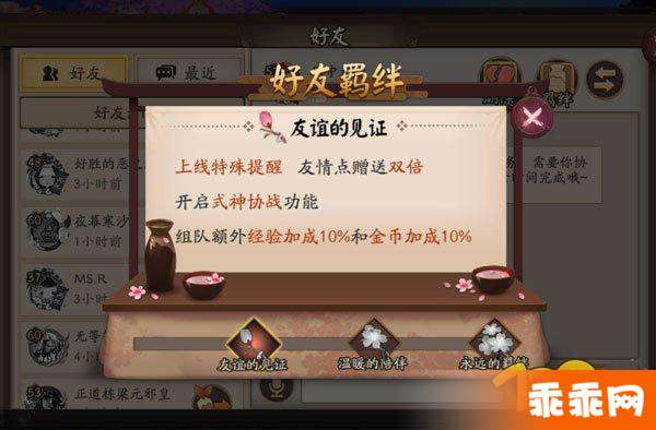 3、达成亲友关系可以解锁亲友协战,可以使用亲友的式神进行剧情、探索、御魂、觉醒、挑战副本(除十层)、妖气封印等。自己的式神被亲友使用还会获得奖励。