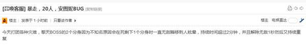 今天打团各种灾难,擎天BOSS的2个分身因为不知名原因会在死剩下1个分身时一直无敌瞬移刺人眩晕,持续时间超过2分钟,并且解除无敌1秒然后又持续重复