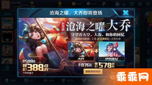 英雄大乔; 原价588点券 现价388点券