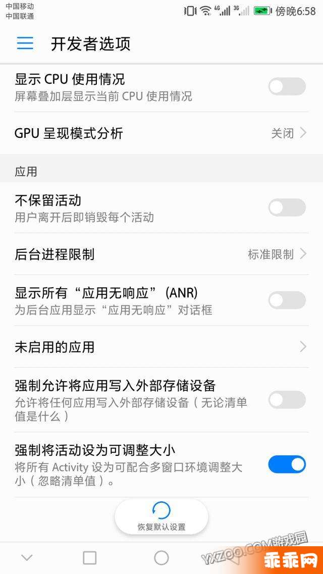 1.在系统设置中的开发者选项内,打开“强制设为可调整大小”选项