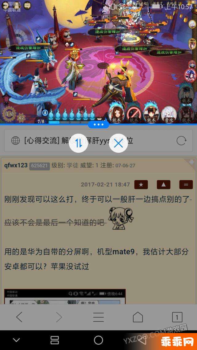 3.点击分屏线中间,点击交换分屏,这样就可以固定在上方打开阴阳师,下方可以自由切换微信以及其他应用等