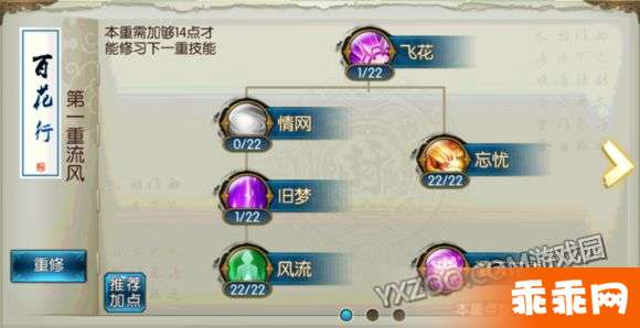 第一重——旧梦1 忘忧22 风流22 共计45点