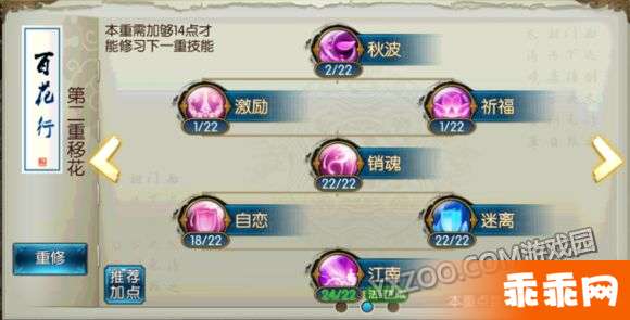 下面来说缠绵(PK)合欢技能加点。