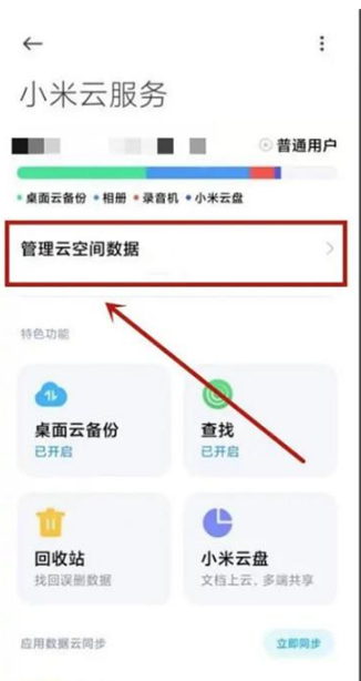 3、接着来到云服务的页面以后选择【管理云空间数据】;