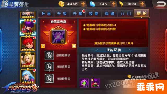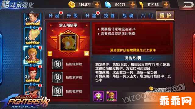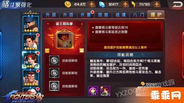 援助出现条件:第一回合起,每回合我放有一个格斗家释放必杀后可触发,冷却两回合。
