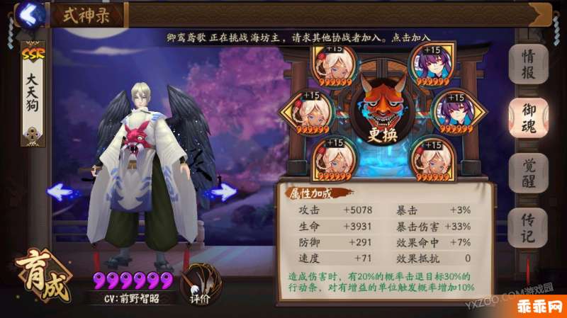 我是春之樱的一只咸鱼,最近为了做金币任务顺便打了打斗技,其实就是这个玩意,日女天狗,二四六速度攻击攻击,别的式神最好带个奶,带个控制,然后其他的就随意了