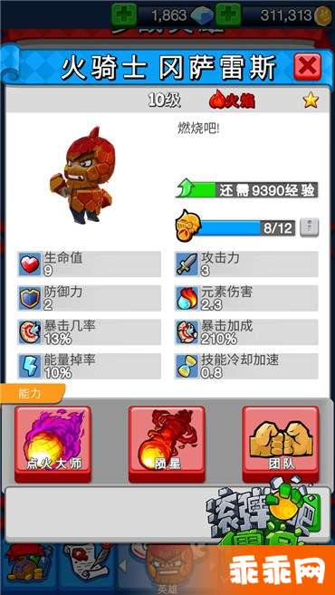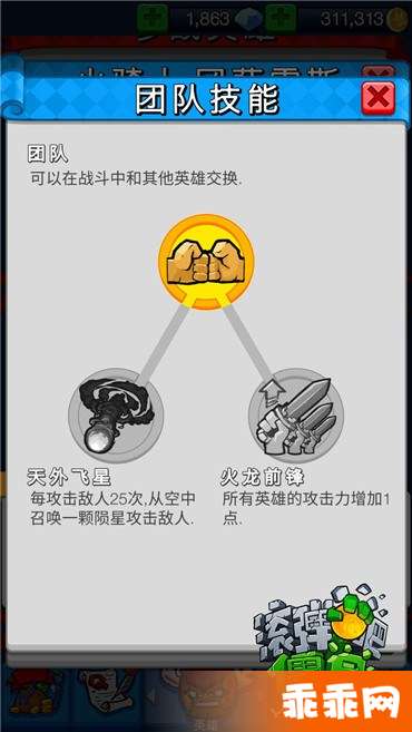 初始技能:团队,可以在战斗中和其他英雄交换。
