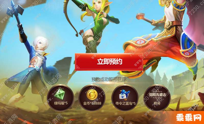 成功预约后即可获赠一份礼包,内含绿玛瑙、大量金币、传令蓝鸟,以及独一无二的荣耀称号——“冒险先遣者”!