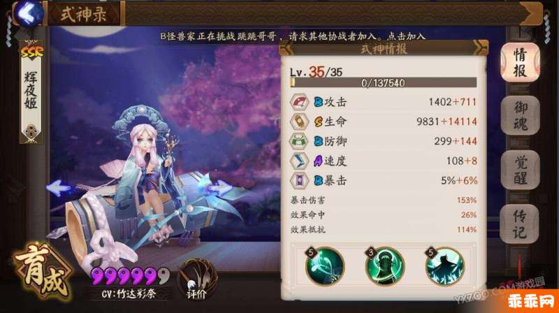 *因为是一名纯纯纯辅助,所以两件套的选择很随意的,可以把一些其他主力式神替换下来的御魂给辉夜姬。要知道对于大部分玩家来说,御魂的再利用也是很重要的。