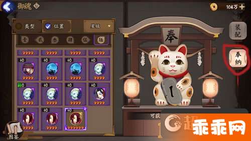 多余的御魂可以在御魂界面找招财猫批量奉纳得到金币。纳奉四星及以上御魂更有几率获得神赐的随机奖励。使用该功能时,请留意将贵重御魂上锁哦!