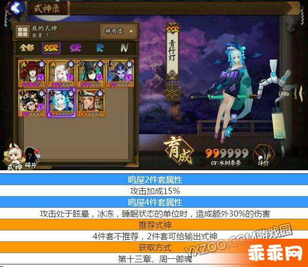1速246散件5星琴师、2速暴击鸣屋6星灯姐、3速招财5星座敷、4速返魂香5星兵俑、5速魍魉100命中5星般若(6星地藏酒吞/5星木魅老头/5星蚌精一目连/5星日女雪女)。