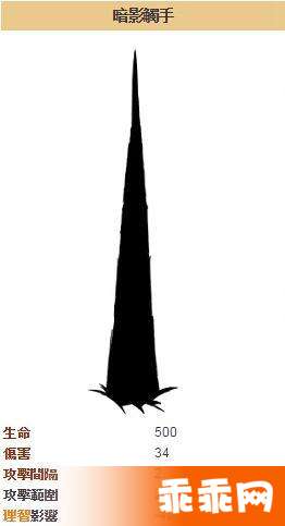 暗影触手是固定位置且拥有有限攻击范围的。这意味着对上移动快速的敌人将不慎理想,反之,对上移动速度较慢或固定位置的敌人将有突出表现。