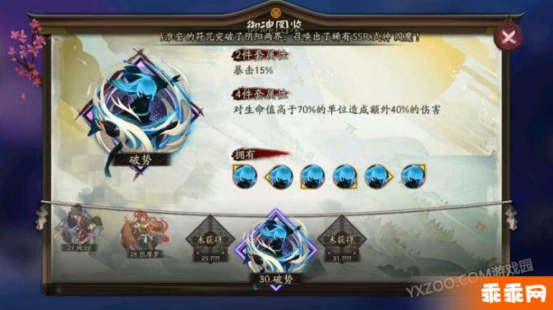 如果你的阵容只有判官一个输出的话那么破势一定很适合你,破势压血线,利用被动暴击收割,在攻击加成高的情况下暴击伤害也是很乐观的。