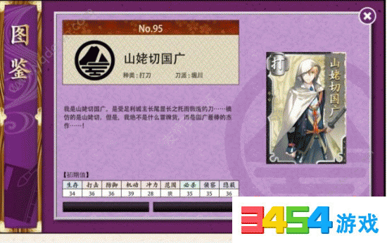 山姥切国广:生存:34;打击:36;防御:36;机动:39;冲力:28;范围:狭;必杀:35;侦察:35;隐蔽:36