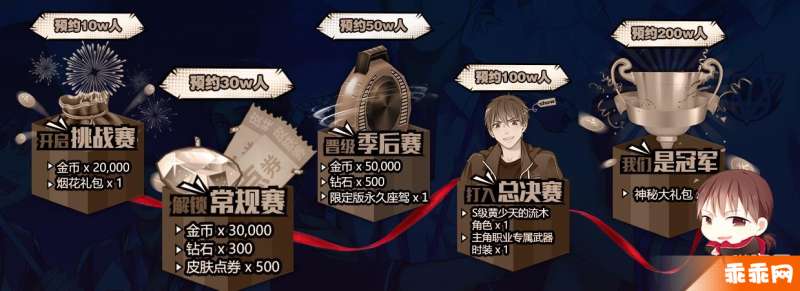 当预约量达到10W、30W、 50W 、100W 、200W时,全体开荒团成员皆可以在游戏内直接获得对应阶段奖励。在这里黄少角色助你在联盟大杀四方,钻石金币助你挥金如土,皮肤点券、武器时装助你时尚换装。放出烟花道具撩妹(汉)不孤独,使用潮流座驾加速走上巅峰之路。