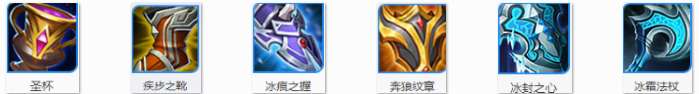 后期可以把奔狼做出来这件辅助装备加速效果很好用,不管对自己还是帮助队友都是个不错的效果。冰霜法杖和冰封之心效果差不多,主要以减速BUFF为主,提供的小量AP加成也有着不错的加成。