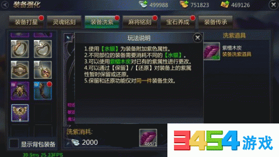 4、若玩家对现有紫属性不满意,可使用紫檀木炭对拥有紫属性装备进行属性改造。