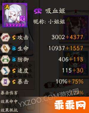 优点:残血爆发力惊人,输出靠平a,不消耗鬼火,给其他四个式神留有足够的搭配空间,面板生命防御属性较好,生存能力强。对方在秒不掉吸血姬的情况下不敢轻易把吸血姬打成残血。