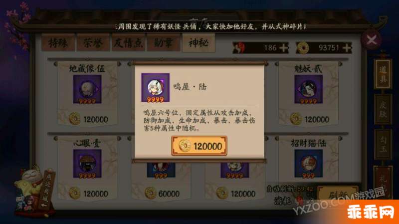 并且6号位御魂,可以随机出一切除了速度以外的属性,全是百分比的。自己看商店看得出来吧。所以……由于6号位的单一性,需要暴击的式神,暴击伤害可能不高……需要暴击伤害的式神如茨木儿子,暴击几率就很可能不高……