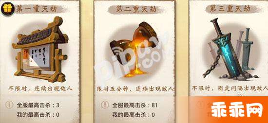第一重天劫的怪物难度其实不大,就是让玩家一直杀怪的,但有5分钟时间限制,玩家需要在5分钟内杀尽量多的怪物,每杀到一定数量就会开启一个宝箱,越后面的宝箱奖励越好,是获得生产材料的主要方法哦。
