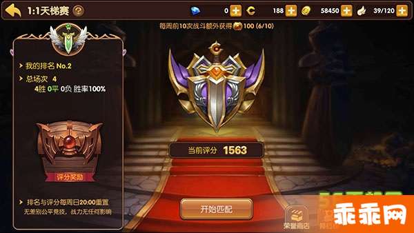 1、初始评分为1500分,获胜获得评分,失败则扣减评分。(评分也是根据玩家战斗情况来看,玩家对局后的血量,以及技巧都是算在评分计算里。)