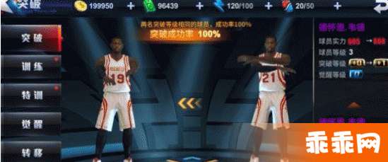 相同球员可突破,突破后球员战力大幅上升,但是只有相同突破等级的球员突破的成功率才能达到100%