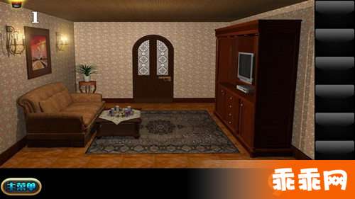 3.打开第一个抽屉,密码在沙发后边壁画的右下角,获得道具(影碟),放进影碟机,点电视,点三次,根据提示图案的数量及顺序,打开抽屉左边的密码柜,获得铲子;