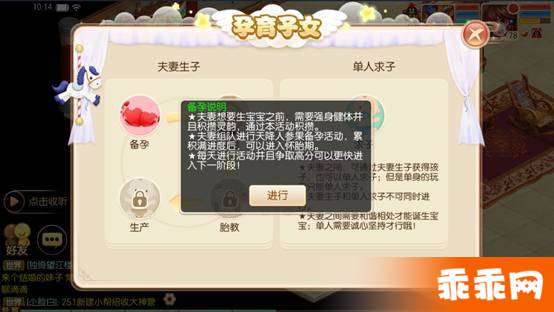 夫妻生子要经过四个阶段哦,必须夫妻组队才能参加。而且游戏设置非常人性化,和人类的生育一样,分为备孕阶段、怀胎阶段、胎教阶段、生产阶段。