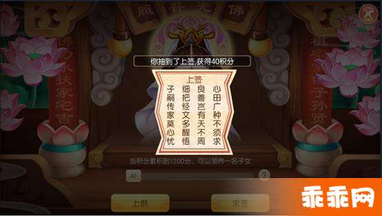 *给观音进贡不同档次的贡品可以获得积分。