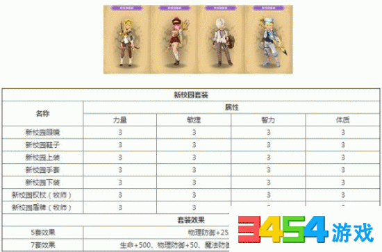 新校园套装也是比较基础的一件套装,但是所提供的属性加成也还行,非常的符合玩家在中期的游戏体验,那么这件套装的属性接下来就仔细的来看一下。