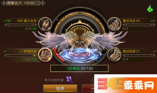 在神翼培养中有四大属性供大家进行培养,分别是最大生命、魔法攻击、物理防御和魔法防御。然后玩家就可以选择属性进行培养,每次培养可获得属性和培养值,培养值达到本阶上限之后就可以升阶。